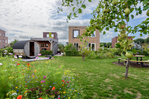 Achterin de tuin is nog een vrijstaande houten berging aanwezig voor de tuinspullen.